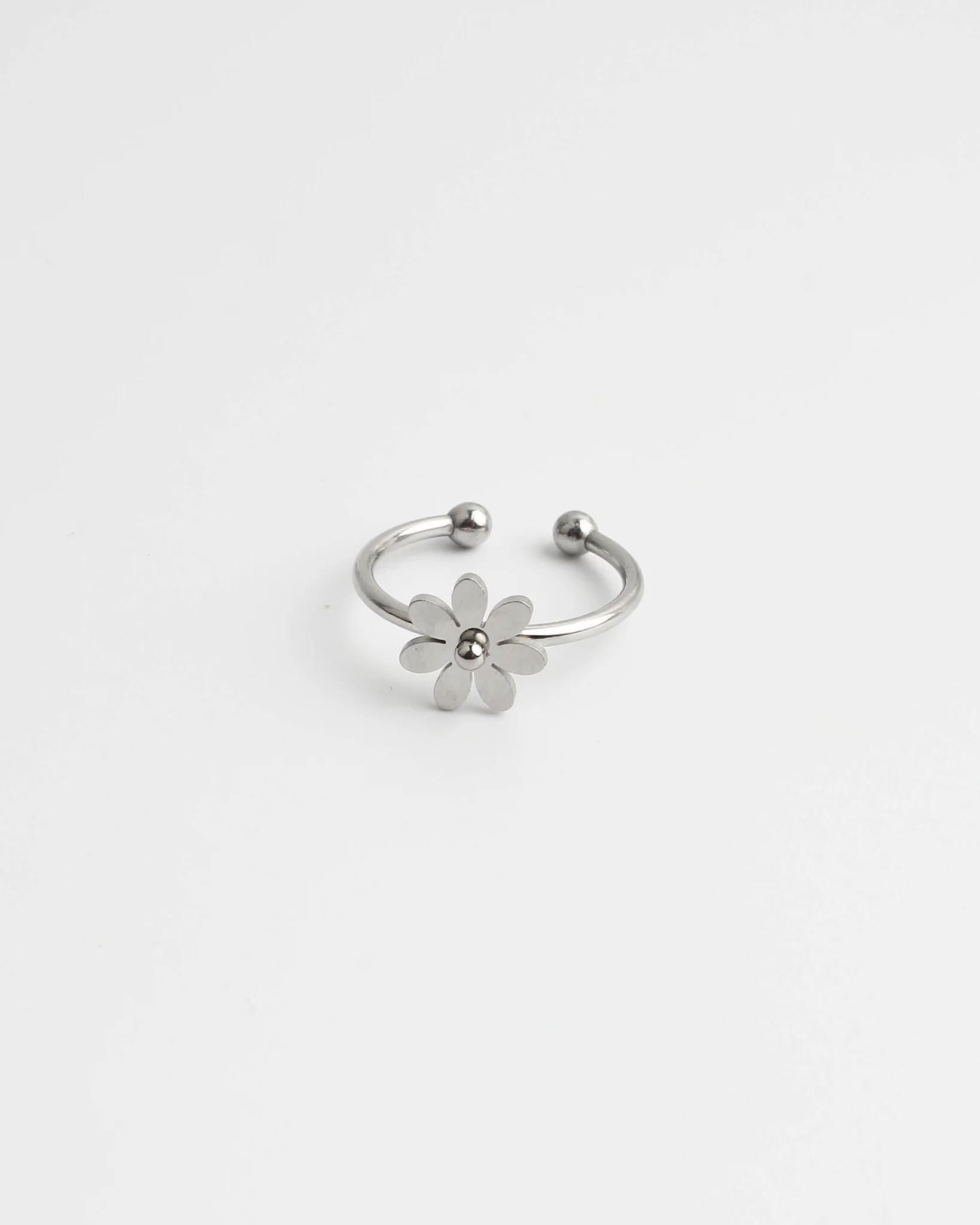Schöner Ring mit minimalistischer Blume. Der Ring ist aus hochwertigem Edelstahl gefertigt und verstellbar.