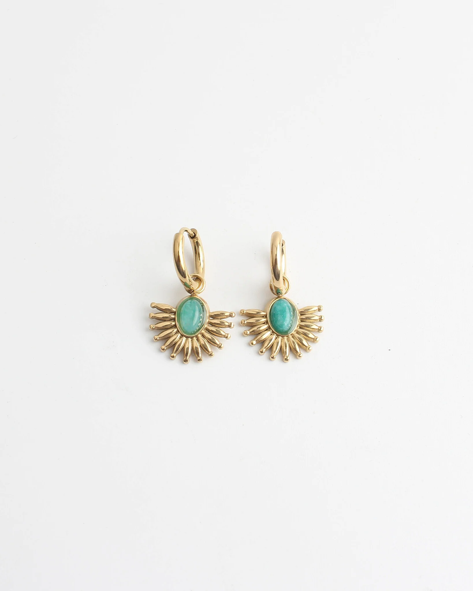 Einzigartige Ohrringe mit einem Naturstein im Zentrum der Aufmerksamkeit. Die Farben können aufgrund der Verwendung von Natursteinen voneinander abweichen. Verkauft als Zweierset. Diese Ohrringe sind perfekt für eine Hochzeit.