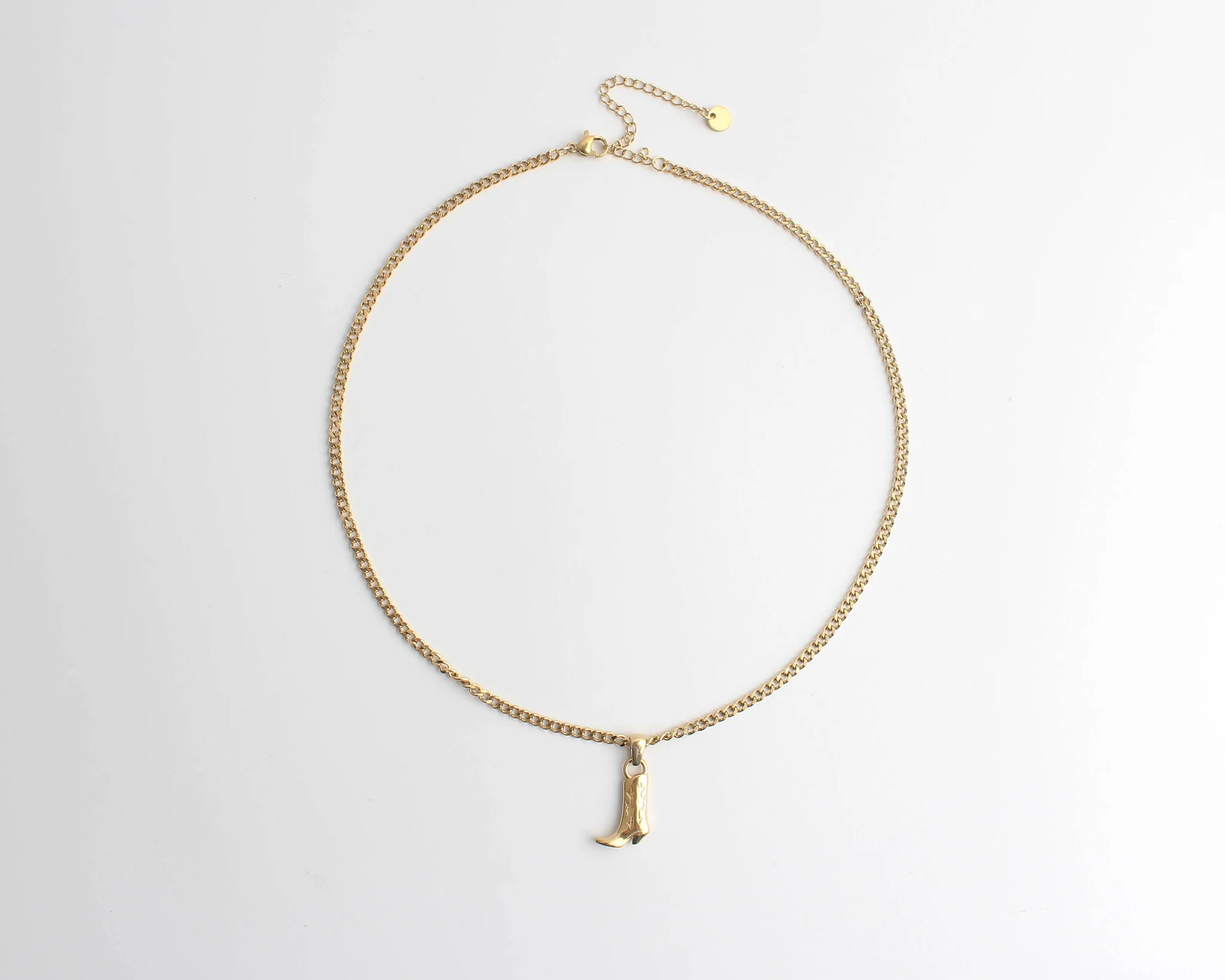 Halskette mit einem Anhänger aus Cowboystiefeln. Die Halskette ist aus rostfreiem Stahl gefertigt. Sie können die Cowboystiefel-Halskette mit unseren Cowboystiefel-Ohrringen kombinieren.