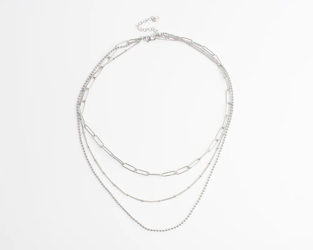 Diese Halskette mit 3 Lagen ist die perfekte Basis für jedes Outfit. Die Kombination aus einer feinen Kette und einer dezenten Gliederkette sorgt für einen trendigen, mühelosen Layering-Look. Trage sie solo für einen minimalistischen Stil.