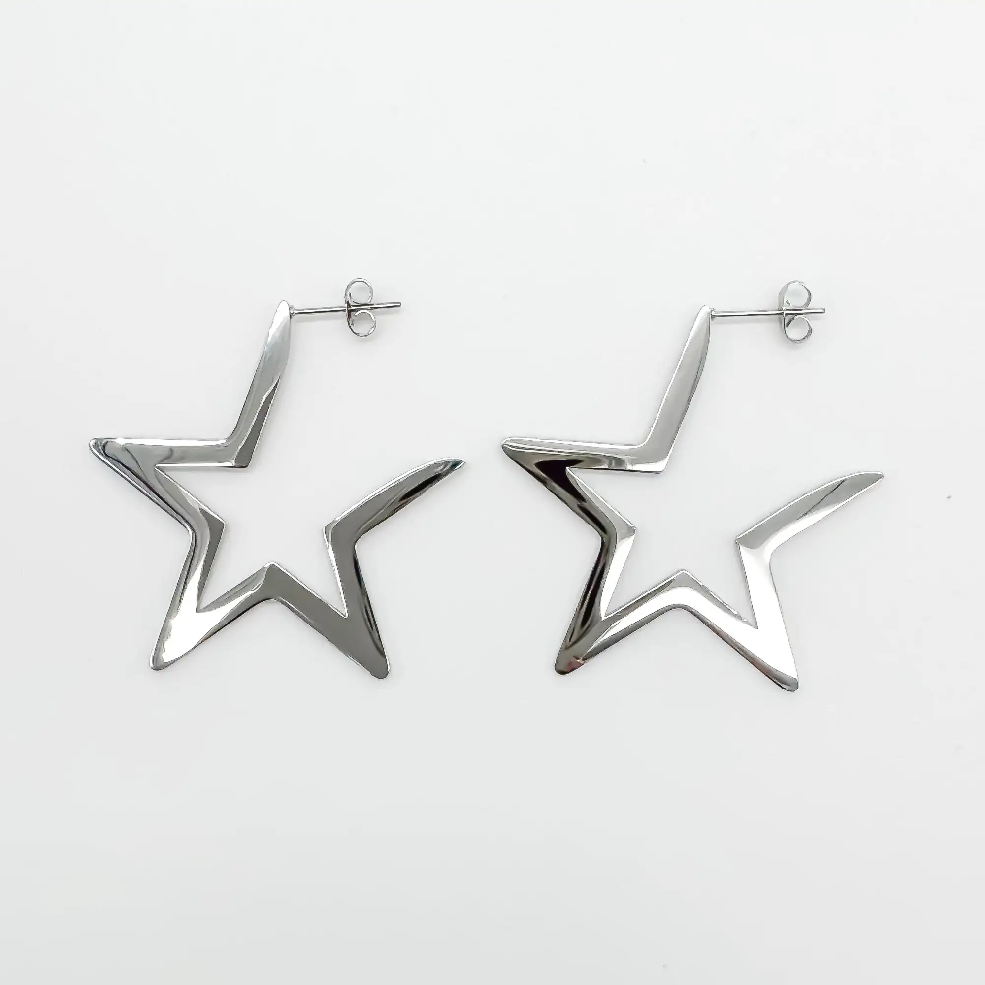 Ohrringe in Form eines Sterns. Fällt schön um das Ohr und vervollständigt Ihr Outfit. Verkauft als Set mit zwei Stück.