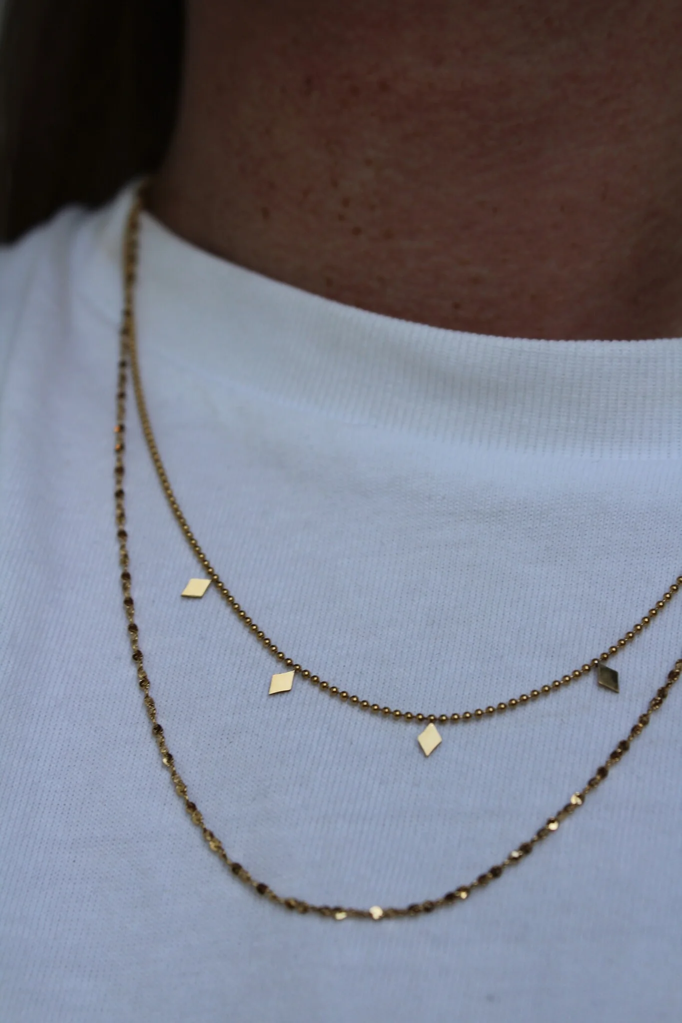 Elegante Halskette mit 2 Lagen. Die Halskette ist aus hochwertigem Edelstahl gefertigt und bleibt lange Zeit schön. Die Halskette ist in den Farben Gold und Silber erhältlich.